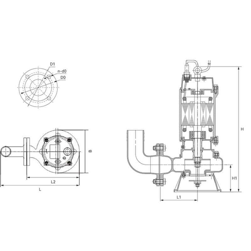 JYWQ系列全不銹鋼自動攪勻潛水排污泵是在變通型排污泵的基礎上采用自動攪拌裝 置,該裝置隨電機軸旋轉產生極強的攪拌力,將污水池內的沉積物攪拌成懸沉浮物, 吸入泵內排出,提高了泵的防堵、排污能力,一次性完成排水、清污、除淤,節約了運行成本,是具有明顯的先進性的實用性的環保產品。