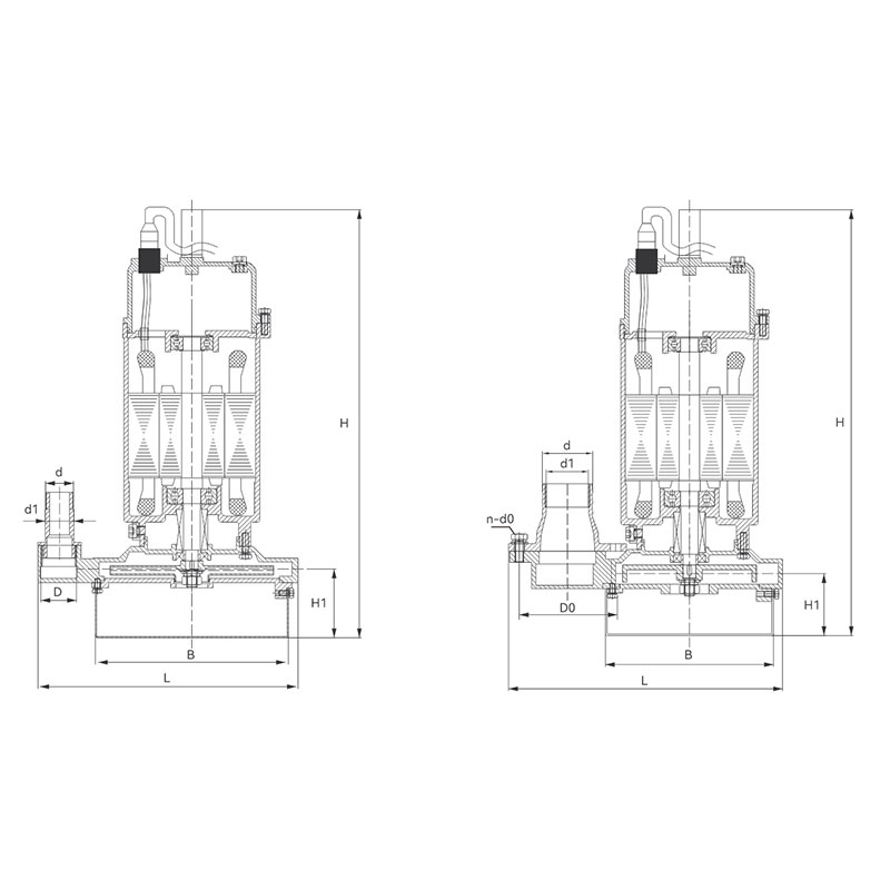 L | B | H | H1 | D | d | d1 | n-d0 | D0 | ||||||||